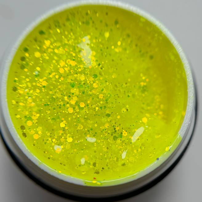 Gel constructor neón con glitters brillantes.