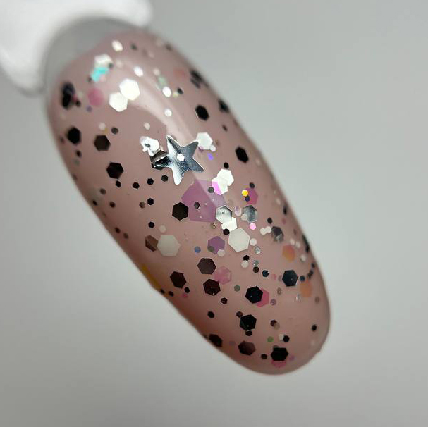 Finalizador con flakes brillantes.
