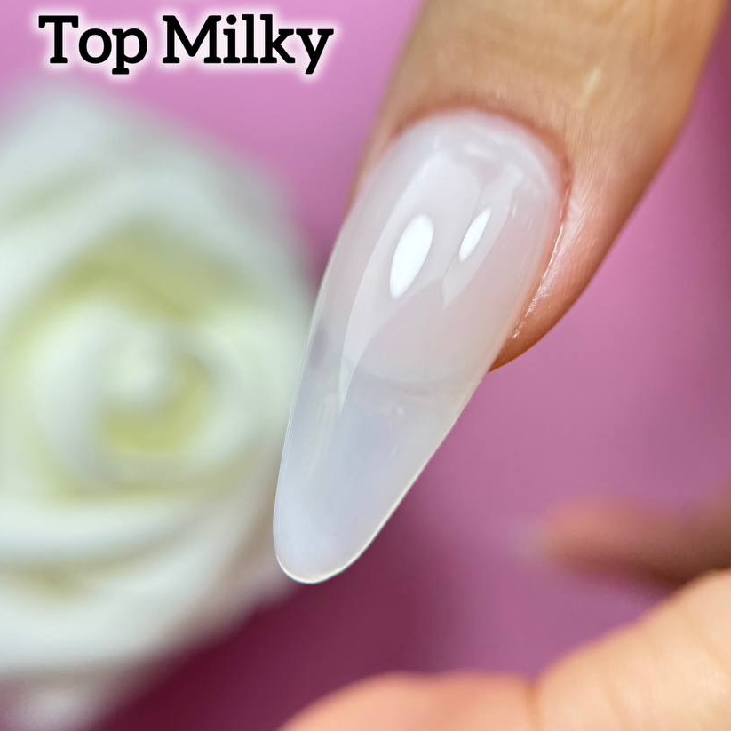 Usa el Top Coat Milky IB Nails en tus diseños y acábalos con un toque lechoso.